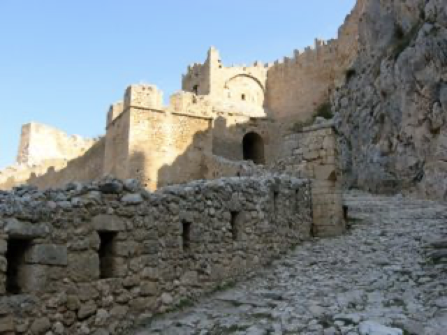 Acrocorinto è una roccia alta 575 metri che domina la pianura di Corinto. e è stata utilizzata già dai tempi antichi come castello (Acropoli). Corinto era una città – stato importante della Grecia antica. Controllava il punto nevralgico di Istmo e costituiva il più importante nodo commerciale del mondo antico .Sono stati eretti il tempio di Afrodite , l’acropoli e a metà strada una chiesetta bizantina; in alto, si notano una cinta muraria e delle fortificazioni volute per lo più dai Veneziani a difesa del territorio. Si può parcheggiare quasi in cima e passeggiare per le rovine.La salita è impervia e sono necessarie scarpe con suola di gomma.