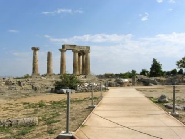 Una piccola stradina porta all’antica Corinto dove soltanto alcune rovine ci ricordano lo splendore della città un tempo leggendaria per la sua potenza e ricchezza: troviamo qui i resti del Tempio di Apollo, costruito nel 540 a.C. con i classici elementi tipici del tempio dorico greco, di cui oggi rimangono sette colonne monolitiche . Poco lontano da qui troviamo l’antica Agorà ; nella Corinto antica notiamo anche il Tempio di Ottaviano realizzato sotto l’impero romano, e la fontana Pirena voluta nel sesto secolo a.C. come sorgente sacra.