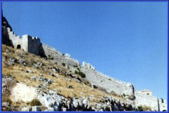 - Il Castello franco con i merli e le torri fondato da Guglielmo II de Villeharduin ed è stato successivamente rafforzato da greci e turchi..
