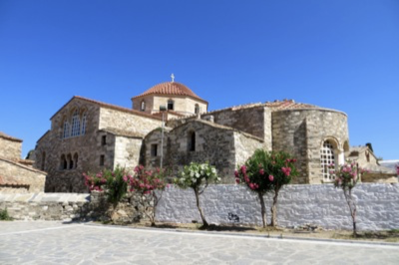 E’ sicuramente il villaggio più caratteristico dell’isola.Il paese è pedonalizzato. Si parcheggia la macchina e si procede a piedi, incontrando subito alcune gradevoli taverne.Noi ci siamo fermati a mangiare alla taverna Klarino. Si percorre il cosiddetto Sentiero bizantino tra chiesette,piazzette archi e angoli suggestivi, fino ad arrivare alla chiesa d’Aghia Triada, quasi interamente costruita con il marmo dell’isola che ha una rara collezione di icone bizantine. Il turismo non ha modificato più di tanto la conformazione di questo bel villaggio cicladico, dominato dalla maestosa figura della cattedrale .Sulle colline circostanti sono visibili numerosi mulini.