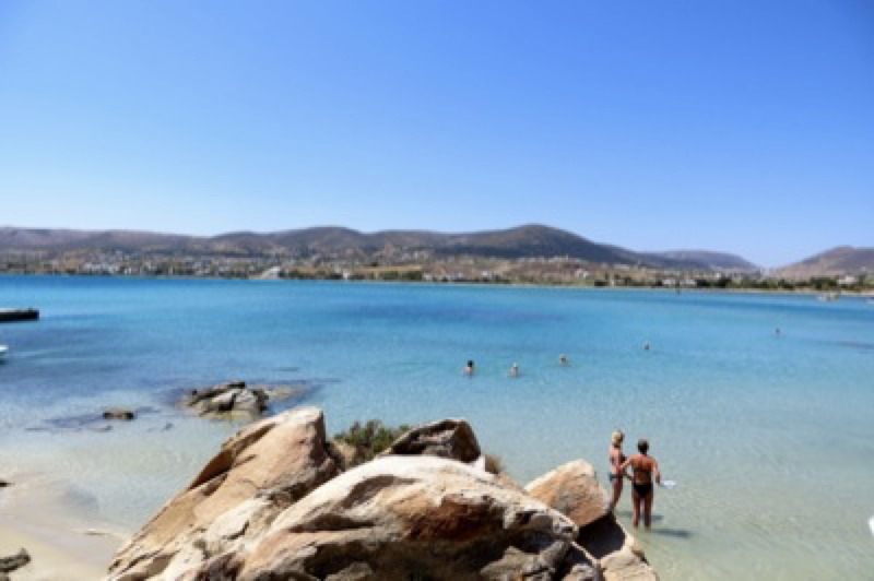 Arriviamo a Parikia , il maggior porto dell’isola ,con l’aliscafo da Creta dopo circa 4 ore di navigazione . È il tipico paese cicladico. Ci sono stradine anguste pavimentate, case bianche a due piani con molti fiori, chiese, e mulini a vento. Dal porto si diparte la via commerciale principale che porta nel cuore della città. Si può andare a piedi alle più famose spiagge di Parikia, Krios,e Livadia. Le spiagge migliori della zona di Paroikia si trovano a Krios e ad Agios Fokas.