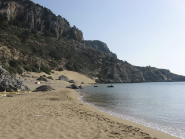 Dopo circa 30 km si arriva a Katavià e da lì dopo a Prasonisi situata all’estremità meridionale dell’isola:una stretta striscia di sabbia che d’inverno è coperta dal mare unisce la piccola isola alla terraferma